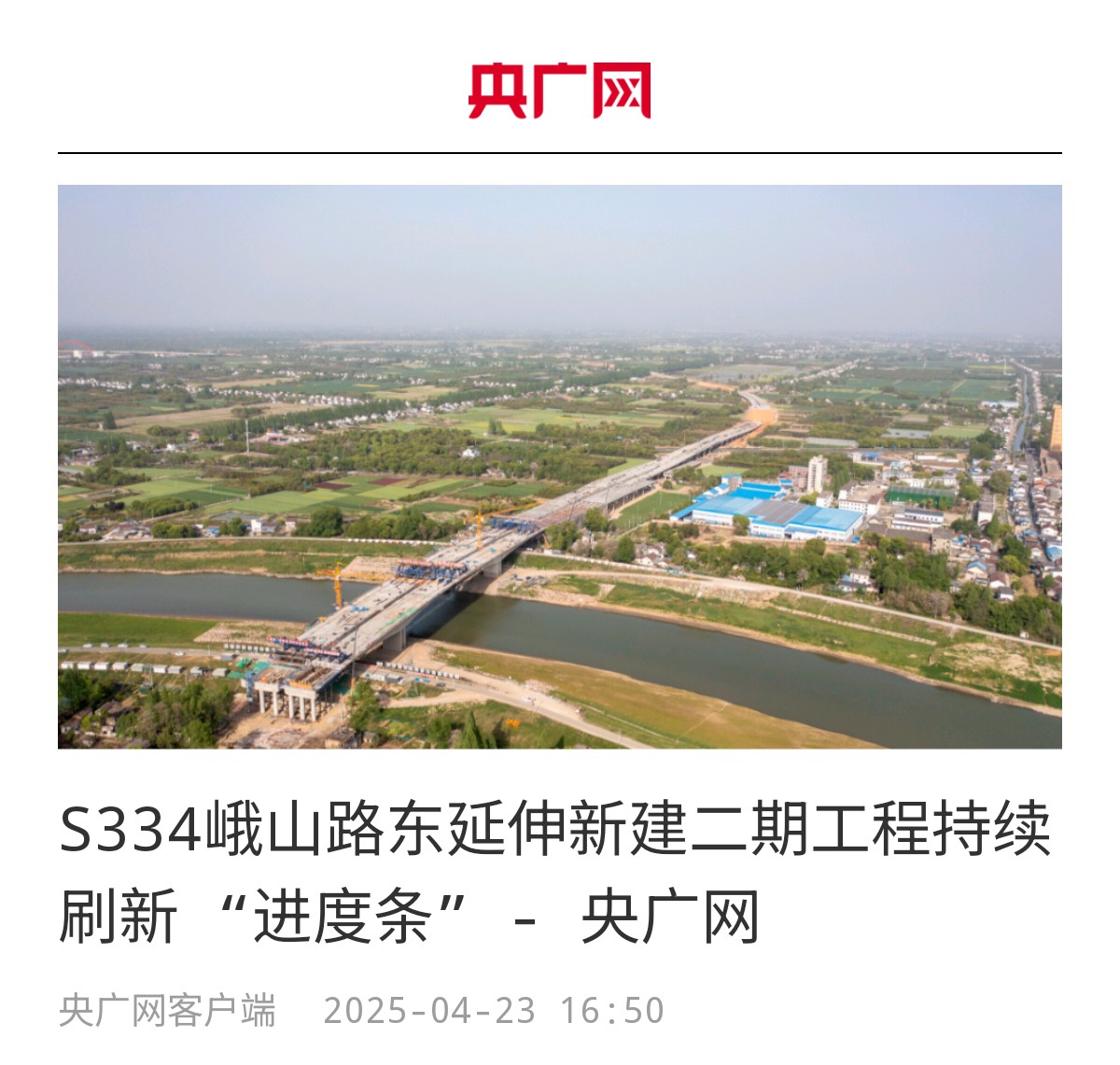 【名媒聚焦】央廣網:S334峨山路東延伸新建二期工程持續刷新“進度條”