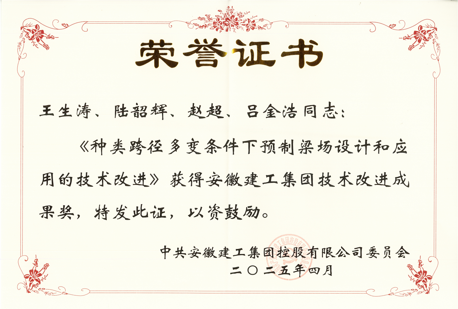 在預(yù)制梁施工中,項目涉及8種不同跨徑的箱梁生產(chǎn)。按照傳統(tǒng)工藝,需對應(yīng)建設(shè)8種專用臺座,不僅占用大量場地,還需投入額外成本,且臺座僅能適配單一跨徑箱梁,資源利用率極低。項目部技術(shù)團隊通過對比不同跨徑箱梁的結(jié)構(gòu)參數(shù)、受力特點,最終確定建設(shè)25米、40米兩種通用臺座。通過靈活調(diào)整模板支撐結(jié)構(gòu)、優(yōu)化鋼筋綁扎流程,使兩種臺座可完全適配8種跨徑箱梁的預(yù)制需求。此舉減少了6種專用臺座的建設(shè)投入,還節(jié)省施工用地約9.8畝,縮短工期15天,相關(guān)技術(shù)成果《種類跨徑多變條件下預(yù)制梁場設(shè)計和應(yīng)用的技術(shù)改進》還榮獲集團技術(shù)改進獎及安徽省重大合理化建議獎。