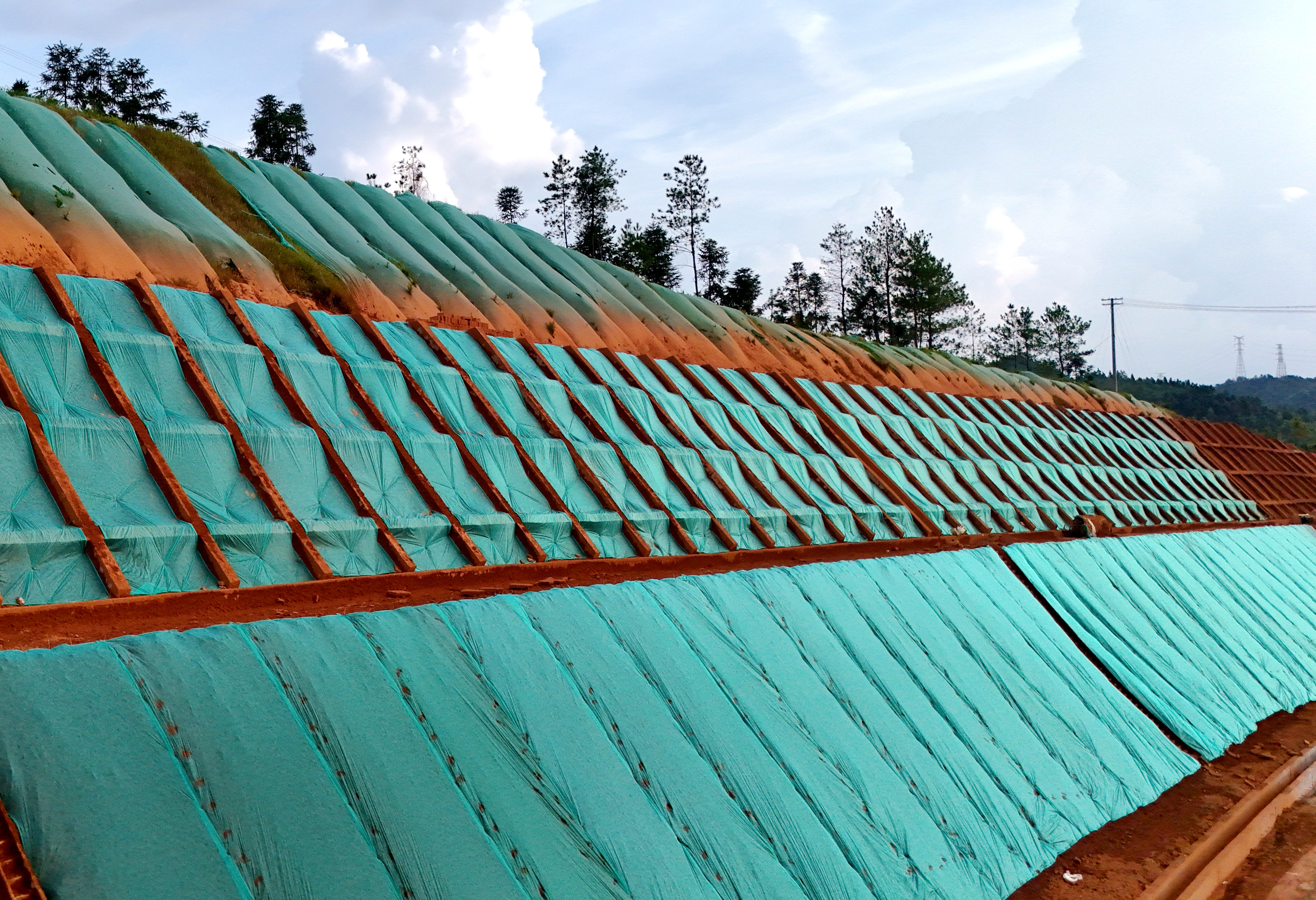 面對土壤本身易侵蝕、穩定性差的巨大挑戰,項目部提出了“預防為主、防治結合、全程管控”的施工思路。在滿足穩定性的前提下控制坡率,有效降低坡面流速,減少侵蝕;同時采取“開挖一段、防護一段、綠化一段”的分區作業、分段施工方式,避免大面積同時開挖,縮短土壤裸露的時間;并針對紅壤酸性強、貧瘠、直接綠化困難的特點,充分發揮項目技術與設備優勢,選取耐貧瘠、耐酸性、固土能力強、根系發達的本地草種,將種子、肥料、土壤改良劑、粘合劑、保水劑等與水混合,成功改良坡面土壤。通過該施工方法,項目降低綜合成本18%,水土流失減少70%,實現了降本增效與生態環保的多重效益。