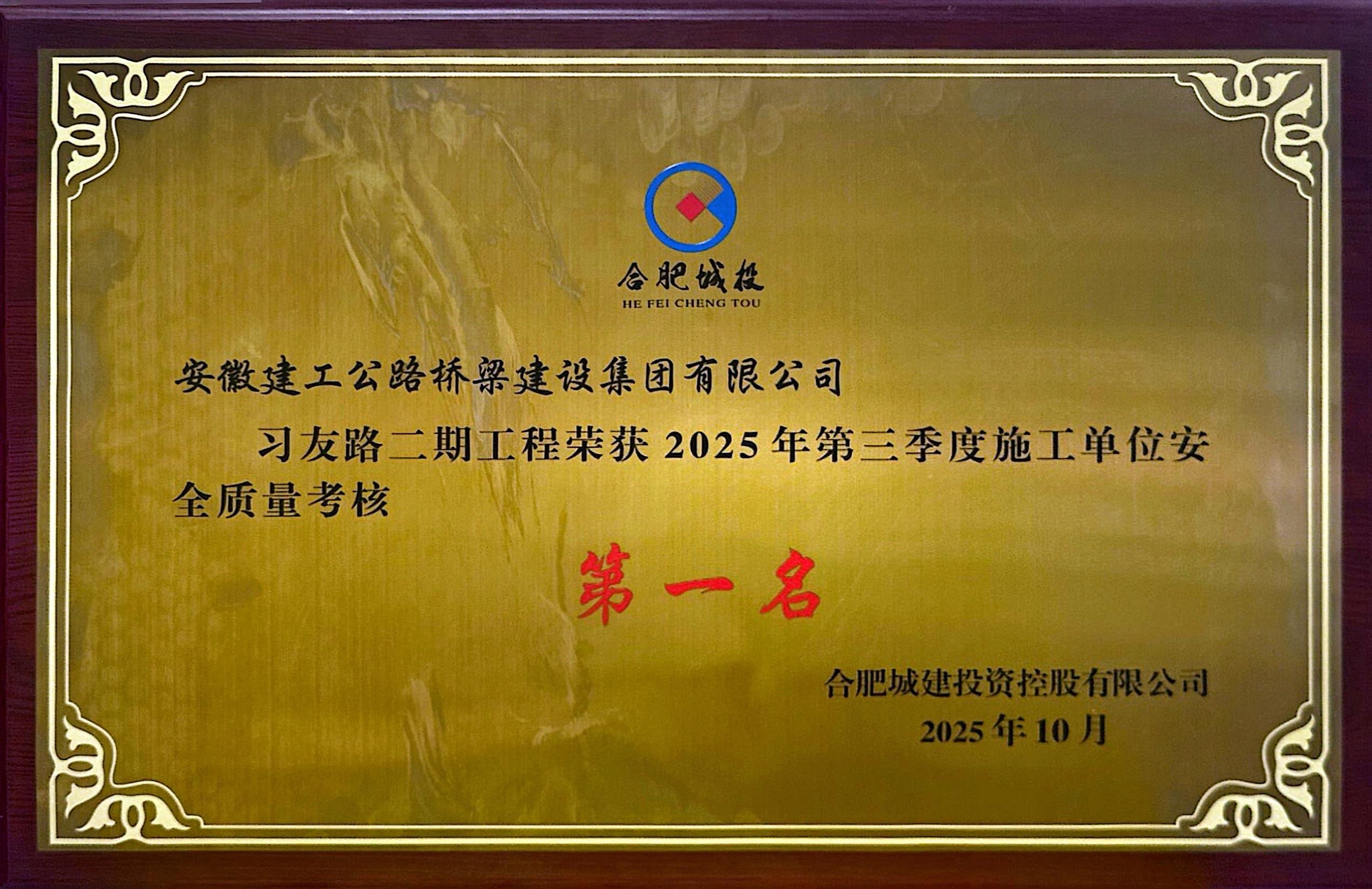 10月28日,在合肥城投組織的三季度安全生產(chǎn)表彰大會上,公司承建的習(xí)友路二期項(xiàng)目憑借卓越的綜合管理成效,在考評中榮登榜首。