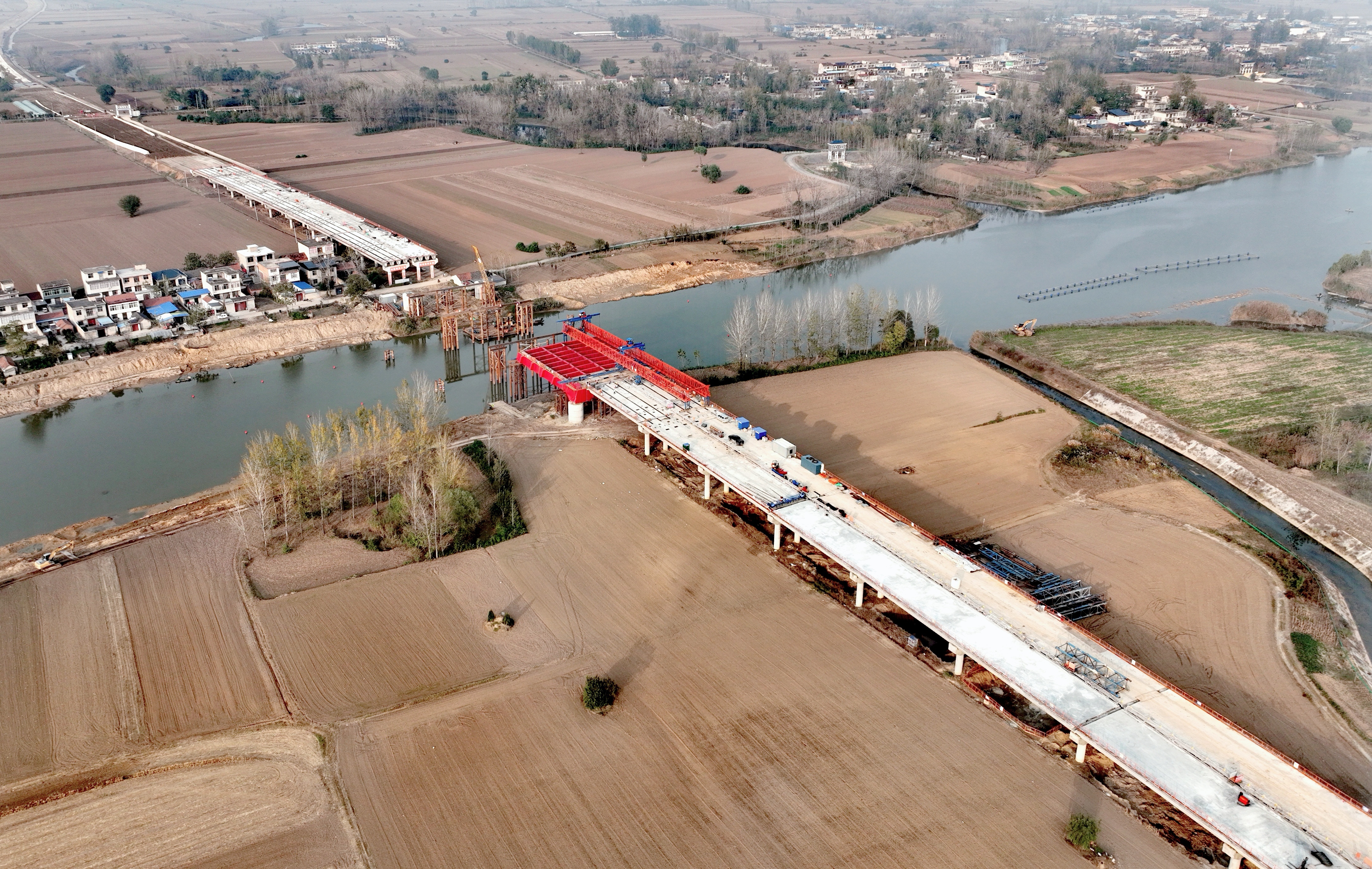 四季度以來,項目已完成多座橋梁的梁板架設及現(xiàn)澆板澆筑,累計架設30米箱梁48片、T梁172片。重點控制性工程澮河大橋于10月11日完成首片鋼箱梁架設,實現(xiàn)以20%工期完成32%產(chǎn)值的目標。當前,項目正加快推進路基連續(xù)交驗與水穩(wěn)規(guī)模化施工,全面啟動橋梁上部結構施工。