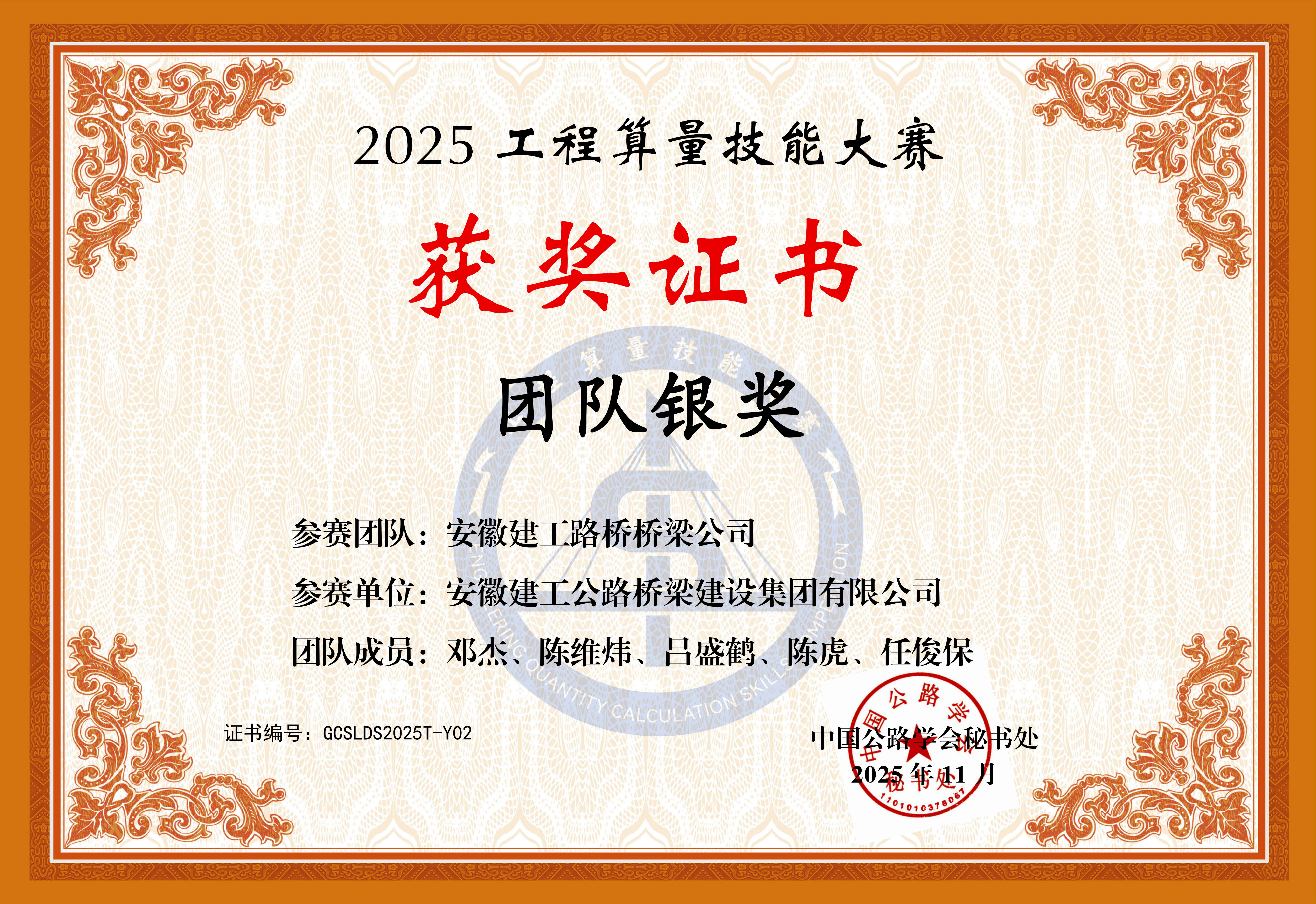 技藝比拼,賽場(chǎng)亮劍顯鋒芒。11月,從廣州傳來(lái)捷報(bào),橋梁公司代表隊(duì)在2025年全國(guó)工程算量技能大賽中脫穎而出,榮獲團(tuán)體賽銀獎(jiǎng)。這項(xiàng)由中國(guó)公路學(xué)會(huì)主辦的全國(guó)性權(quán)威賽事,比拼的是工程精細(xì)化管理和成本控制的硬核實(shí)力。榮譽(yù)的背后,是公司造價(jià)管控專(zhuān)業(yè)水準(zhǔn)的集中體現(xiàn),也為項(xiàng)目提質(zhì)增效提供了堅(jiān)實(shí)的技術(shù)支撐。