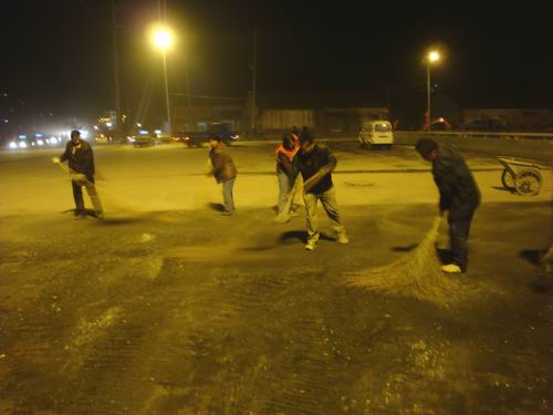 上午8點許,經過7日一夜的交口清理,市政北二環開始有計劃有步驟的進行攤鋪交口橋面部分的施工工作。施工過程中,項目部克服了交通不封閉等制約因素,在確保安全生產的狀態下,對交口橋面的防水層和交口兩側的瀝青層進行有序開展、同時施工。