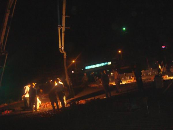 傍晚時分,項目部組織精干力量、調集性能良好的機械設備陸續進入引橋澆注場地。18:00隨著一陣隆隆的炮竹聲響過,淠望路大橋引橋首跨上部結構的混凝土澆注便正式開始了,此次澆筑的混凝土位于大橋10號墩與11號墩之間,混凝土體積320方。現場施工人員克服重重困難,把安徽路橋人的特別能吃苦特別能戰斗的精神發揮得淋漓盡致;經過十多個小時的連續工作,于2009年6月22日凌晨五點圓滿完成了首跨混凝土的澆筑,受到業主、監理單位的肯定和贊揚,同時也為今后引橋上部結構混凝土的澆筑工作積累了經驗。