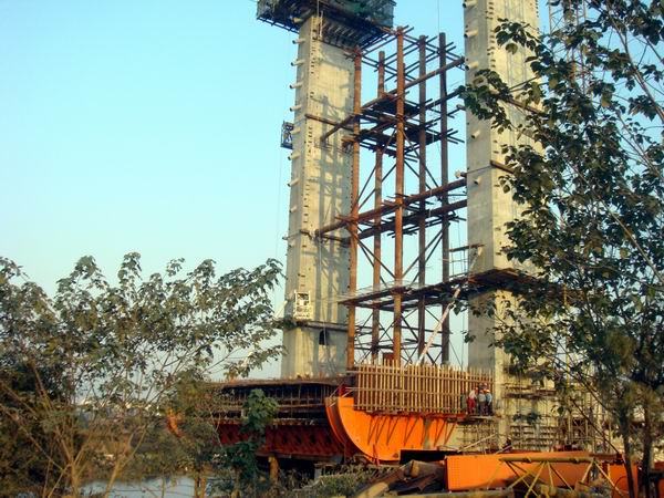 為做好主跨托架現(xiàn)澆段施工,確?,F(xiàn)澆質(zhì)量和安全,項目部高度重視,超前考慮,先后舉行了專項施工技術方案討論和施工技術交底,明確了各工序、環(huán)節(jié)的技術規(guī)程和操作規(guī)范,嚴格過程控制,制定了澆筑值班表,明確責任人,對整個澆筑過程進行全程跟蹤值班,特別是對高程和索力的監(jiān)控,確保了首節(jié)現(xiàn)澆段施工的順利完成。這也標志著六安淠望路大橋施工主跨施工攻堅戰(zhàn)全面打響。