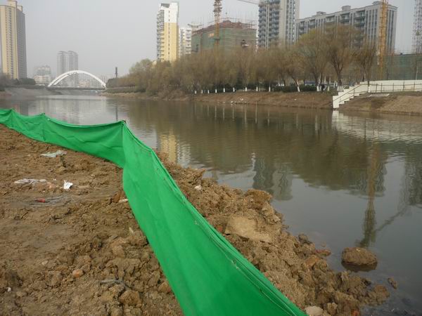 當12月19日,宋斗灣路完成第一根樁(位于南淝河北側,屬于3#橋臺)的開挖澆注工作后,項目經理部就開始籌劃南淝河南側的筑島圍堰工作。12月24日,當3#橋臺的六根樁全部澆注完成后,當天晚上仍繼續前一晚的筑島工作。每次筑島時,現場橋梁技術員、測量技術員和安全員都和工人們一起奮戰,而每次奮戰都是一個通宵。截至25日,南淝河筑島圍堰共計用土近270車,約4600方,筑島面積和筑島深度達到預案和監理要求,符合現場施工的實際要求。至此,筑島圍堰工作圓滿完成。